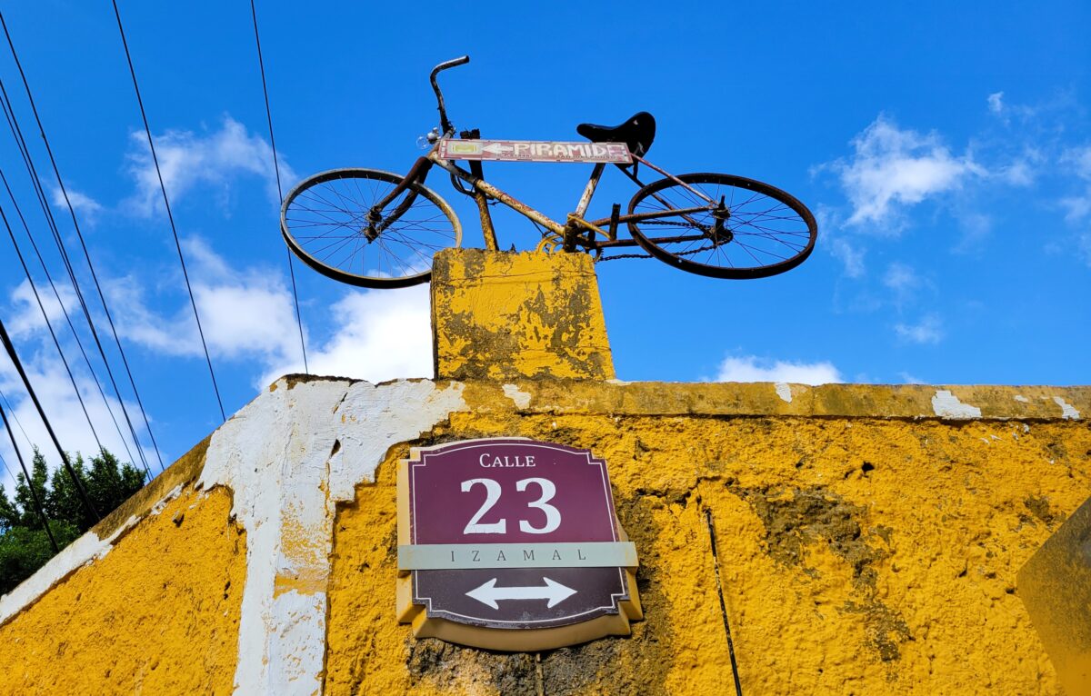 I hopped on the swing in the lush garden. A teenage girl whizzed past on a bicycle, cupping a cold Coke bottle against her cheek to beat the morning Yucatecan sun. Not sure where she was headed, but we had 20 minutes to go before reaching the Yellow City.